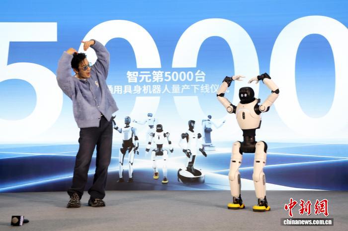 12月8日,智元第5000台通器具身呆板人量产停线典礼正在上海举办。图为:艺员黄晓亮看成用户现身现场取呆板人互动。中新社记者 汤彦俏 摄